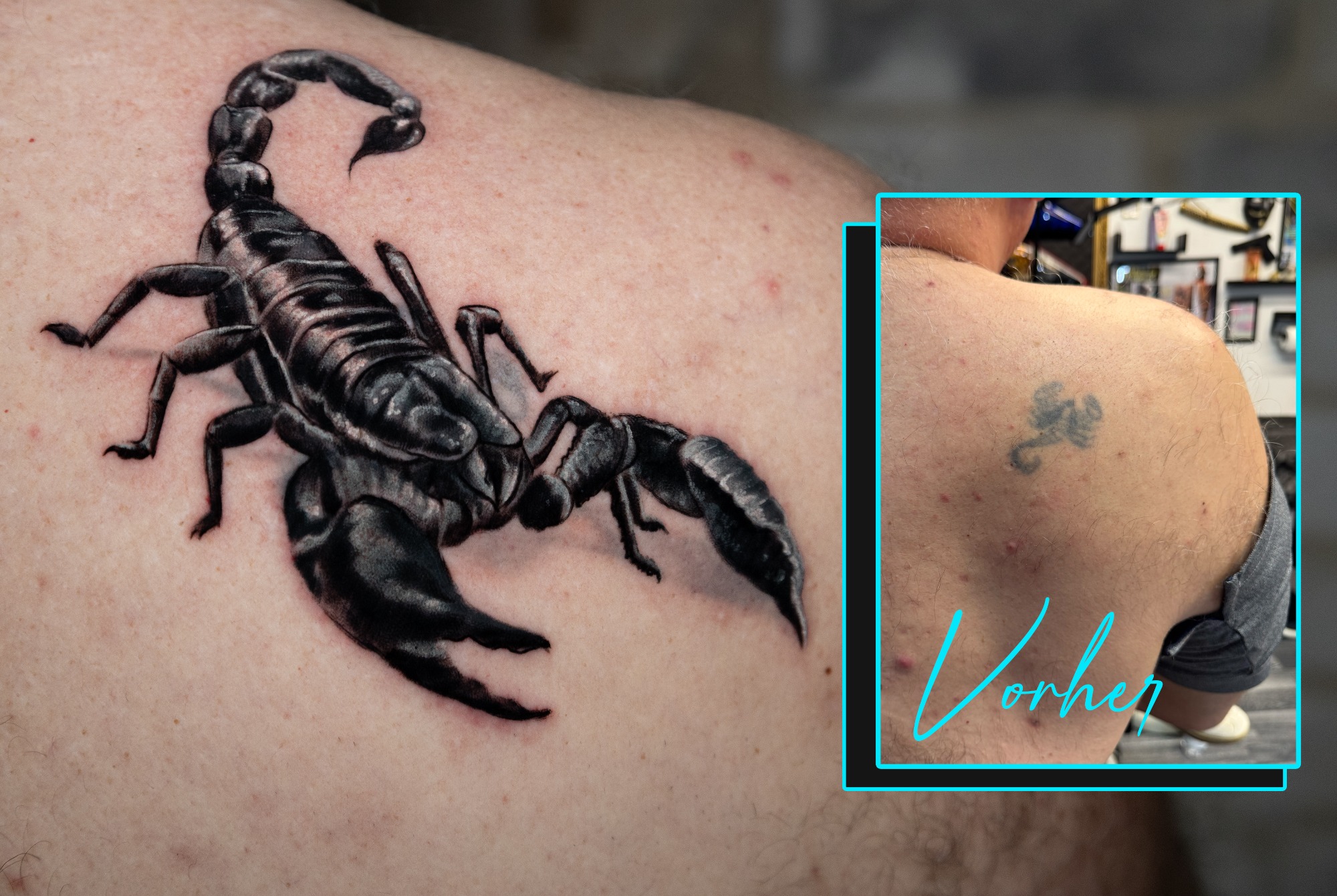 Narben gibt es in verschiedenster Art, ob Tiefere lebenslange Kratzer bishin zu Unfall oder OP Narben. Oftmals wird unterschätzt wie viel ein Tattoo dazu beitragen kann eine alte Narbe zu covern oder zumindest den Fokus komplett zu verlagern. Wichtig ist lediglich dass die Narben älter als 2 Jahre sind.