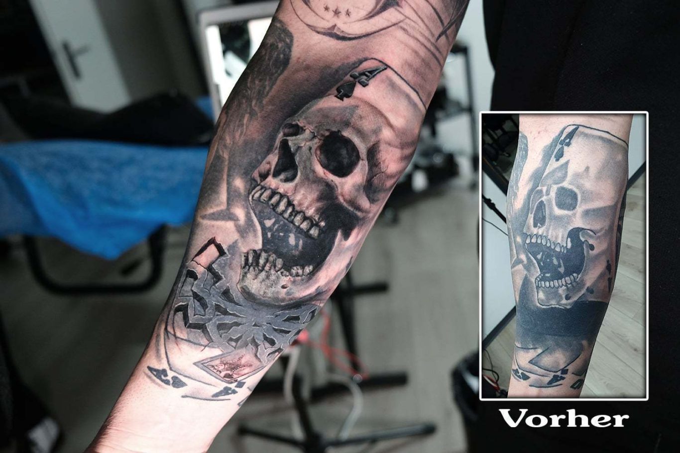 Unser Studio besteht aus erfahrenen Tattoo Künstlern die viele Herausforderungen gemeistert haben und nicht abschrecken vor neuen. Horrortattoos, alte schlecht abgeheilte Tattoos, Narben und vieles mehr gehören zu unseren Alltag.